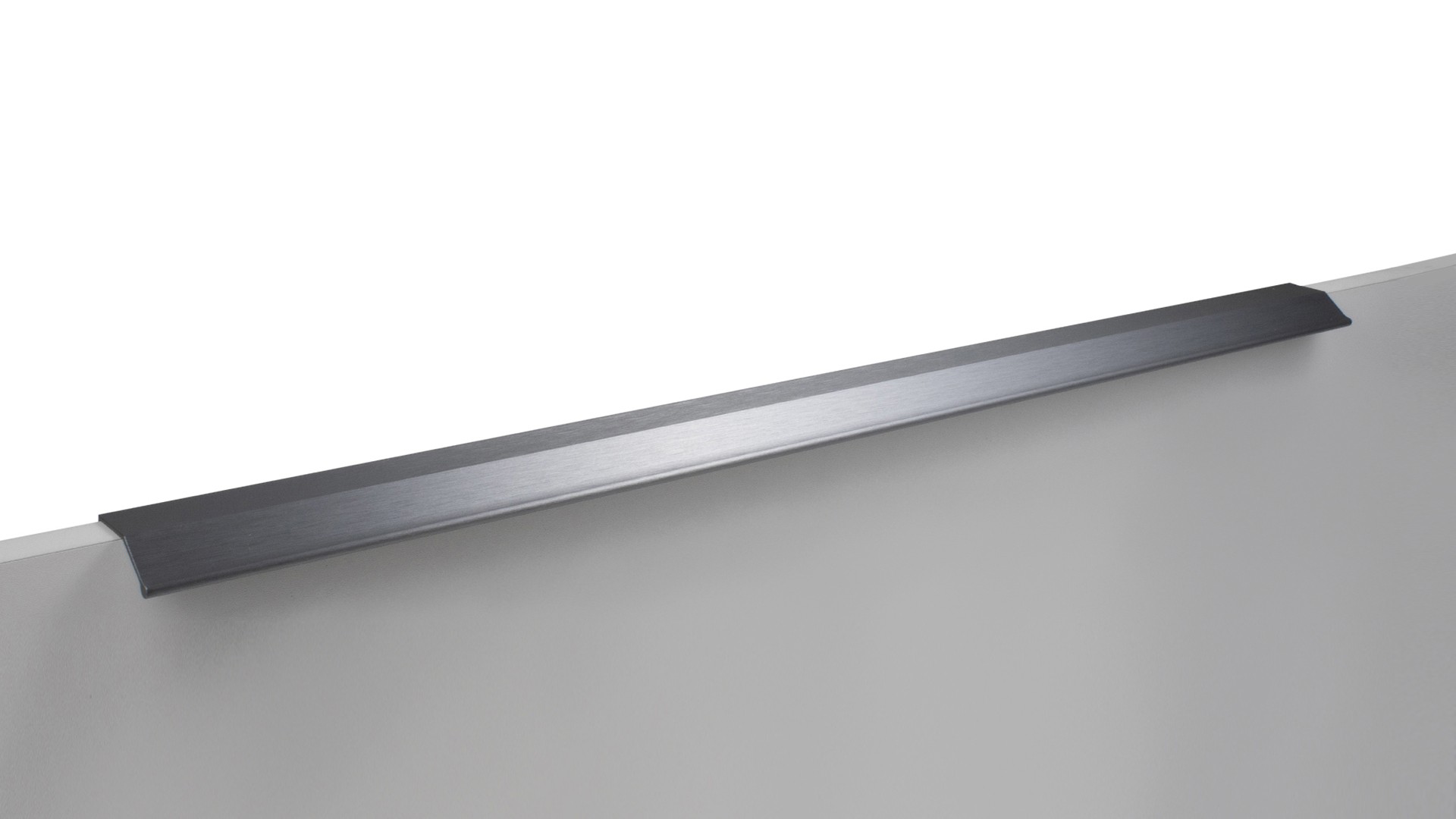 МЕТРИКА RT112 — торцевая ручка из алюминия, с геометричным выступом и рифлением в зоне захвата для эргономичного использования. Устанавливается наложением, подходит для фасадов толщиной от 16 мм до 20 мм.