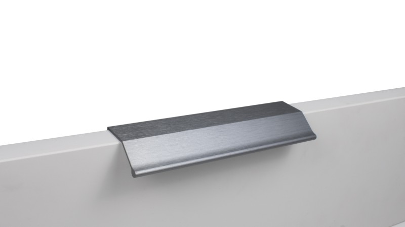 МЕТРИКА RT112 — торцевая ручка из алюминия, с геометричным выступом и рифлением в зоне захвата для эргономичного использования. Устанавливается наложением, подходит для фасадов толщиной от 16 мм до 20 мм.