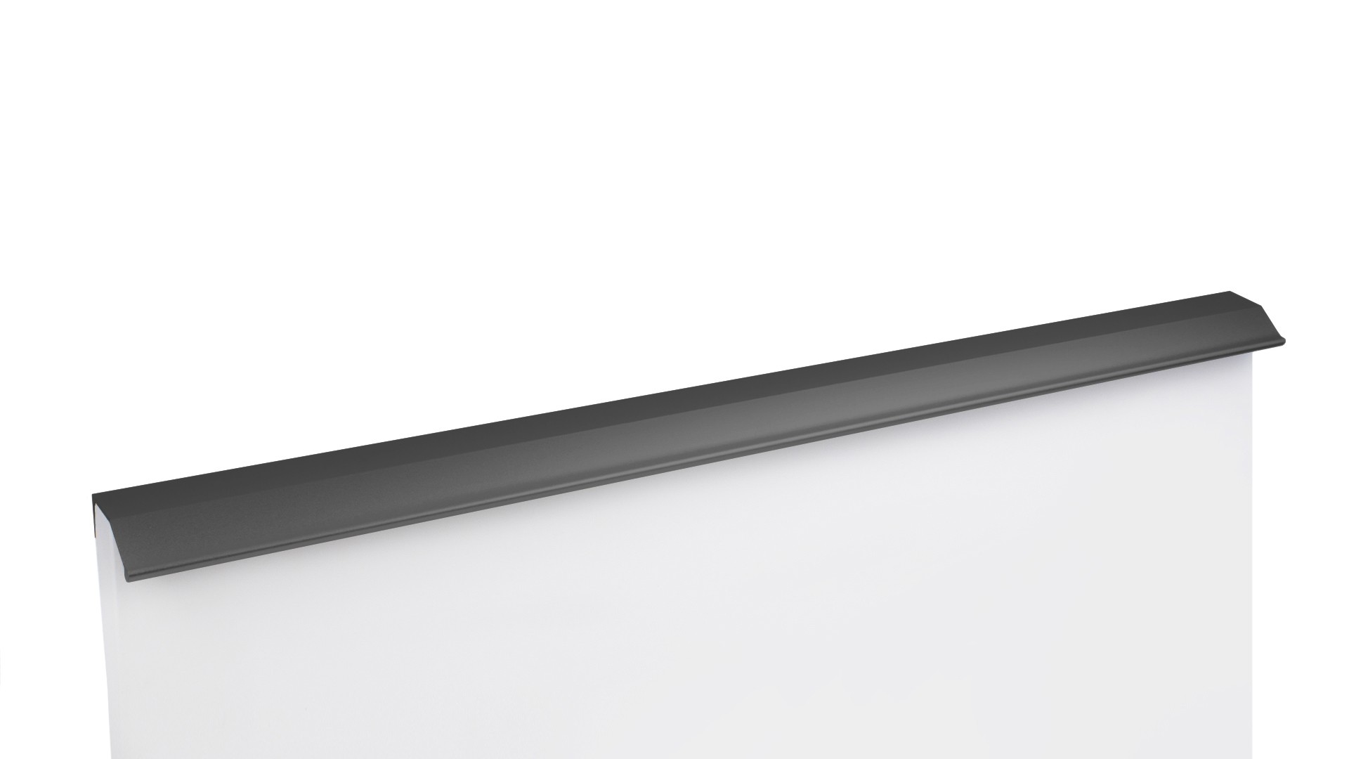 METRICA RT112 — торцевая ручка из алюминия, с геометричным выступом и рифлением в зоне захвата для эргономичного использования. Устанавливается наложением, подходит для фасадов толщиной от 16 мм до 20 мм.
