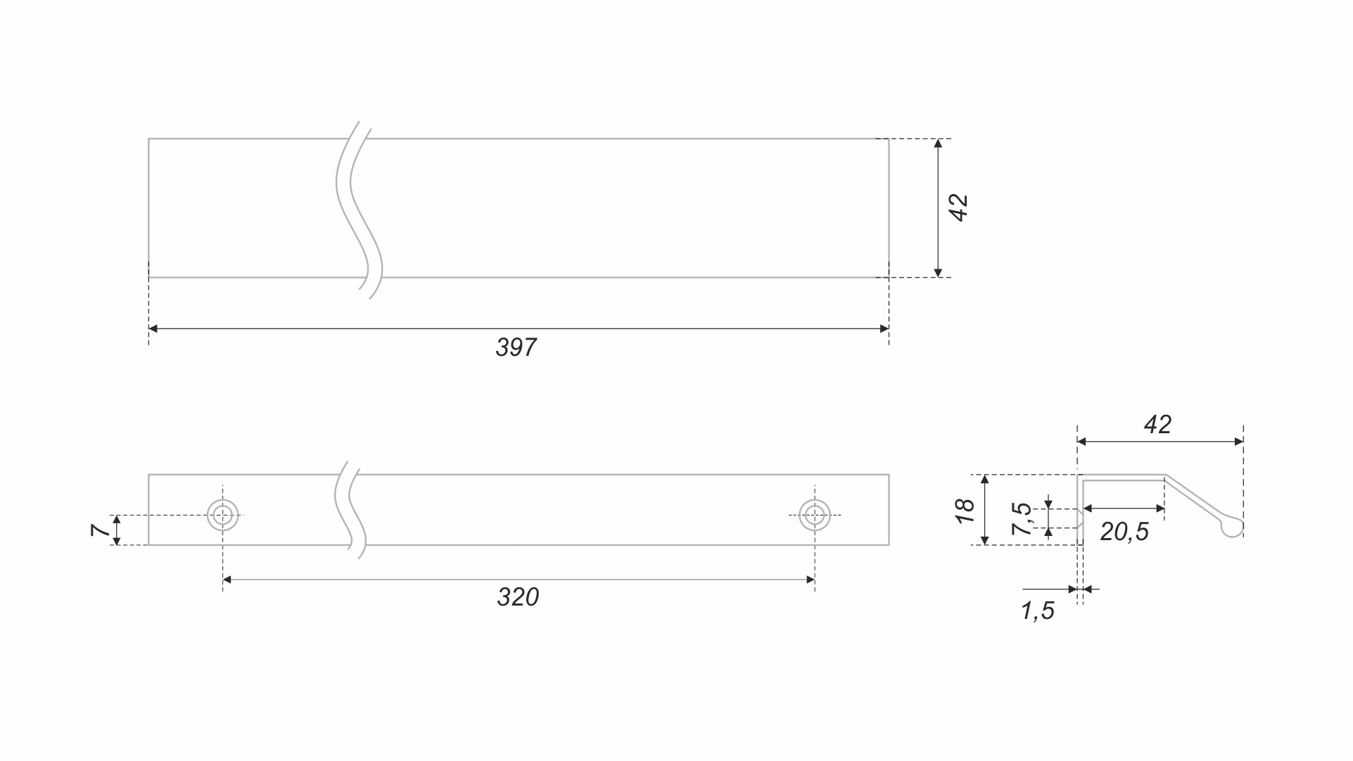Модель крепится на фасад наложением и фиксируется при помощи саморезов. Саморезы не входят в комплект и приобретаются отдельно. Размер саморезов необходимо подобрать самостоятельно, исходя из толщины фасада, на который будет устанавливаться ручка.