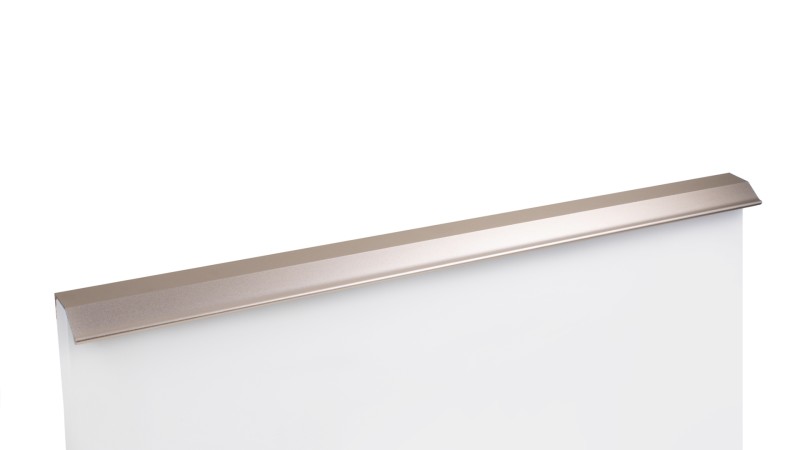 МЕТРИКА RT112 — торцевая ручка из алюминия, с геометричным выступом и рифлением в зоне захвата для эргономичного использования. Устанавливается наложением, подходит для фасадов толщиной от 16 мм до 20 мм.