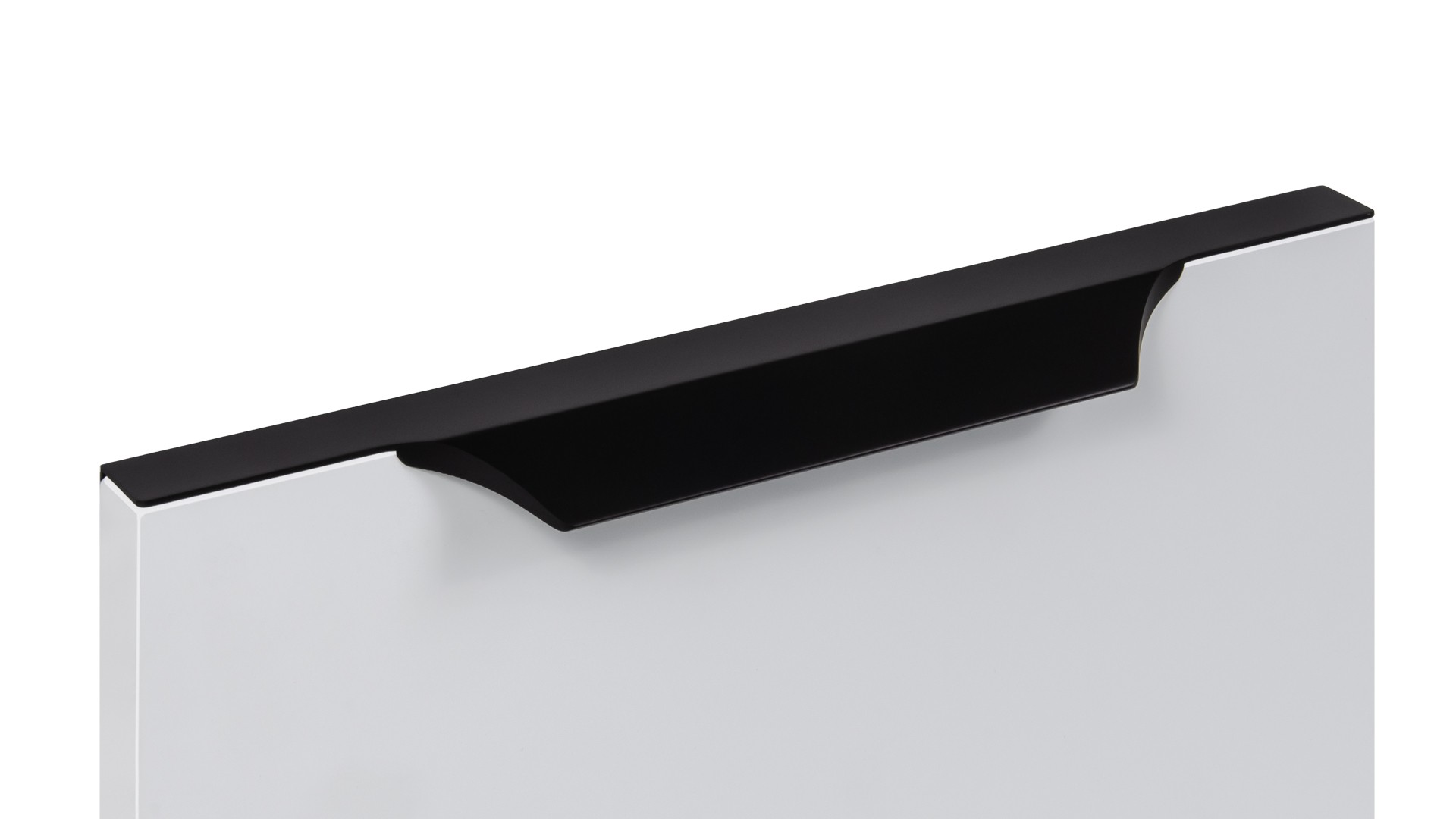 WING RT114 — торцевая ручка с изгибом из алюминия, устанавливается наложением на фасады толщиной 18,8 мм (в цветах BL,GR,SC,SG) и 18,5 мм (в цвете W).