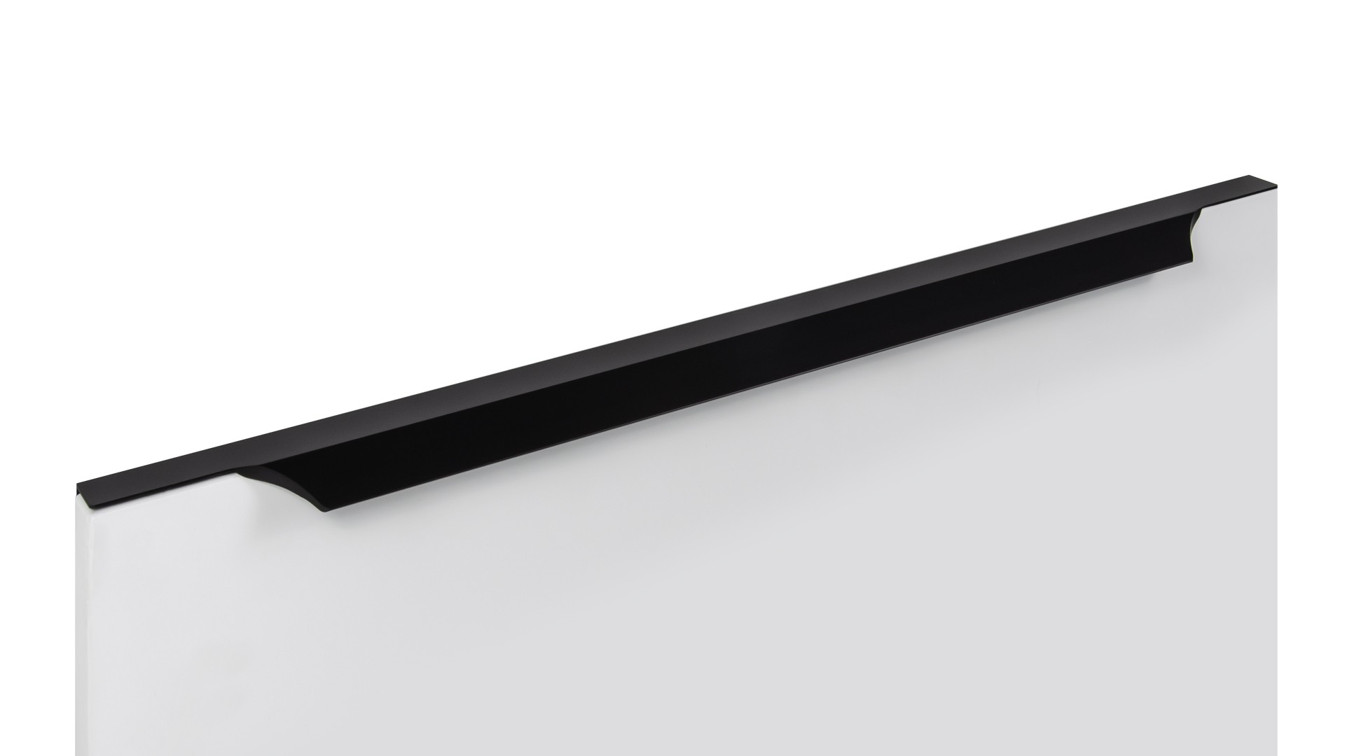 WING RT114 — торцевая ручка с изгибом из алюминия, устанавливается наложением на фасады толщиной 18,8 мм (в цветах BL,GR,SC,SG) и 18,5 мм (в цвете W).