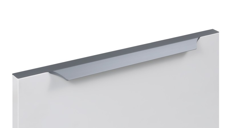 WING RT114 — торцевая ручка с изгибом из алюминия, устанавливается наложением на фасады толщиной 18,8 мм (в цветах BL,GR,SC,SG) и 18,5 мм (в цвете W).