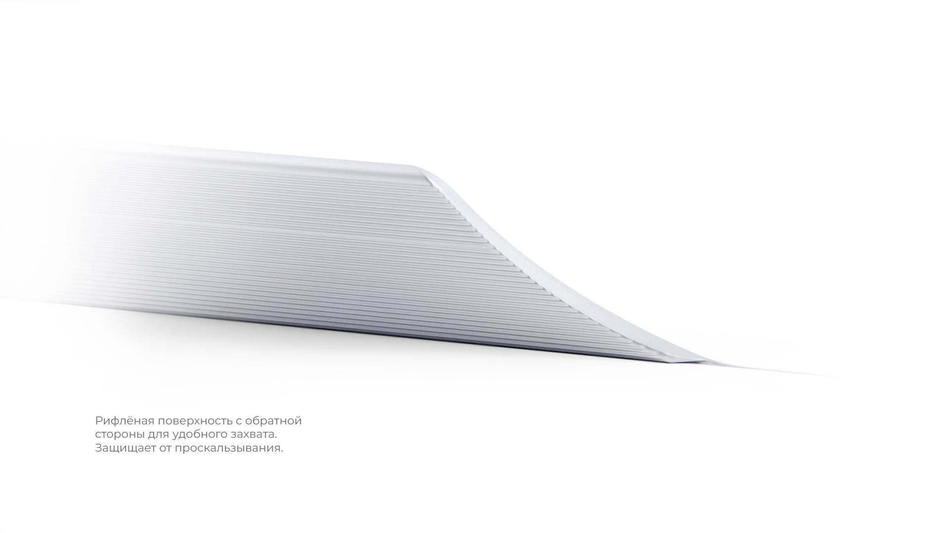 Модель выполнена в стильном дизайне и имеет рифлёное покрытие в зоне захвата для эргономичного использования ручки без соскальзывания. За счёт обтекаемой формы RT114 идеально ложится в ладонь. Дополнительный выступ в конструкции модели создаст эффект погружения фасада, аккуратно закрывая его края.