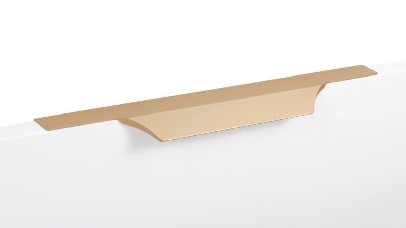 WING RT114 — торцевая ручка с изгибом из алюминия, устанавливается наложением на фасады толщиной 18,8 мм (в цветах BL,GR,SC,SG) и 18,5 мм (в цвете W).