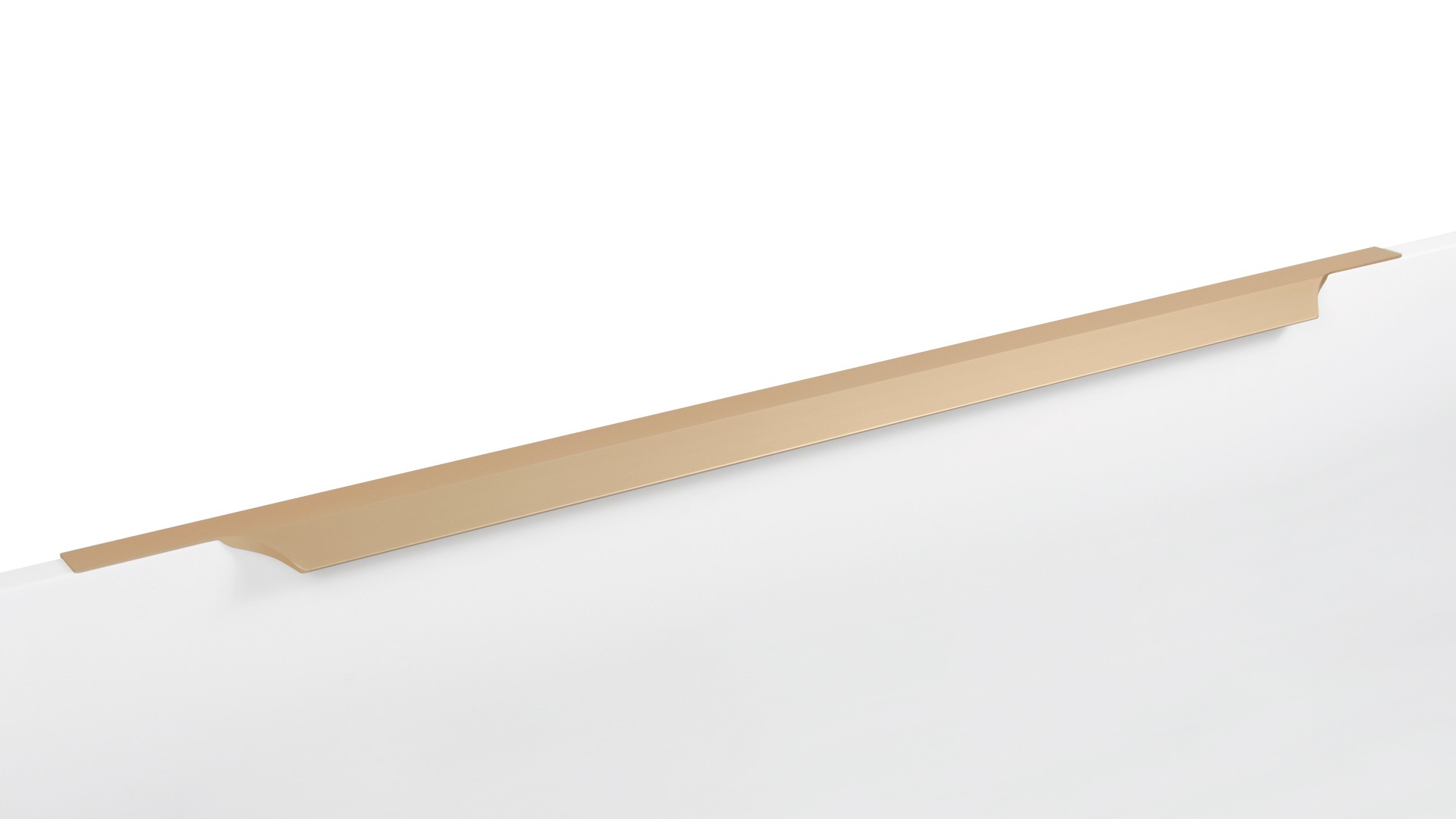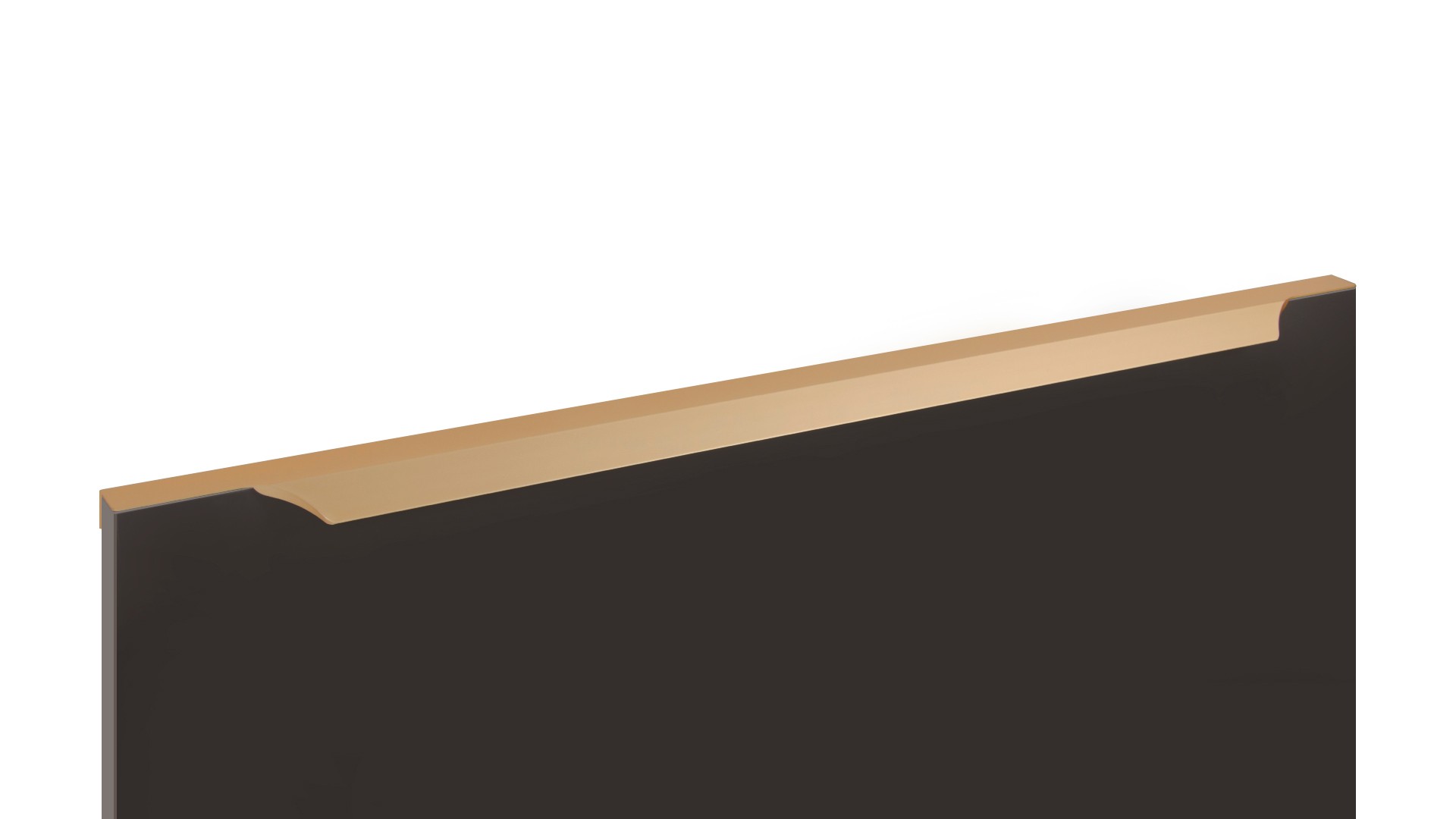 WING RT114 — торцевая ручка с изгибом из алюминия, устанавливается наложением на фасады толщиной 18,8 мм (в цветах BL,GR,SC,SG) и 18,5 мм (в цвете W).