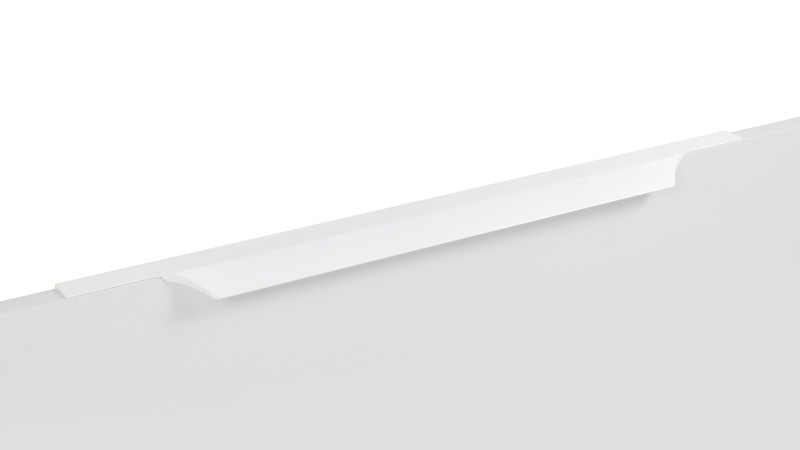 ПОЛЁТ RT114 — торцевая ручка с изгибом из алюминия, устанавливается наложением на фасады толщиной 18,8 мм (в цветах BL,GR,SC,SG) и 18,5 мм (в цвете W).