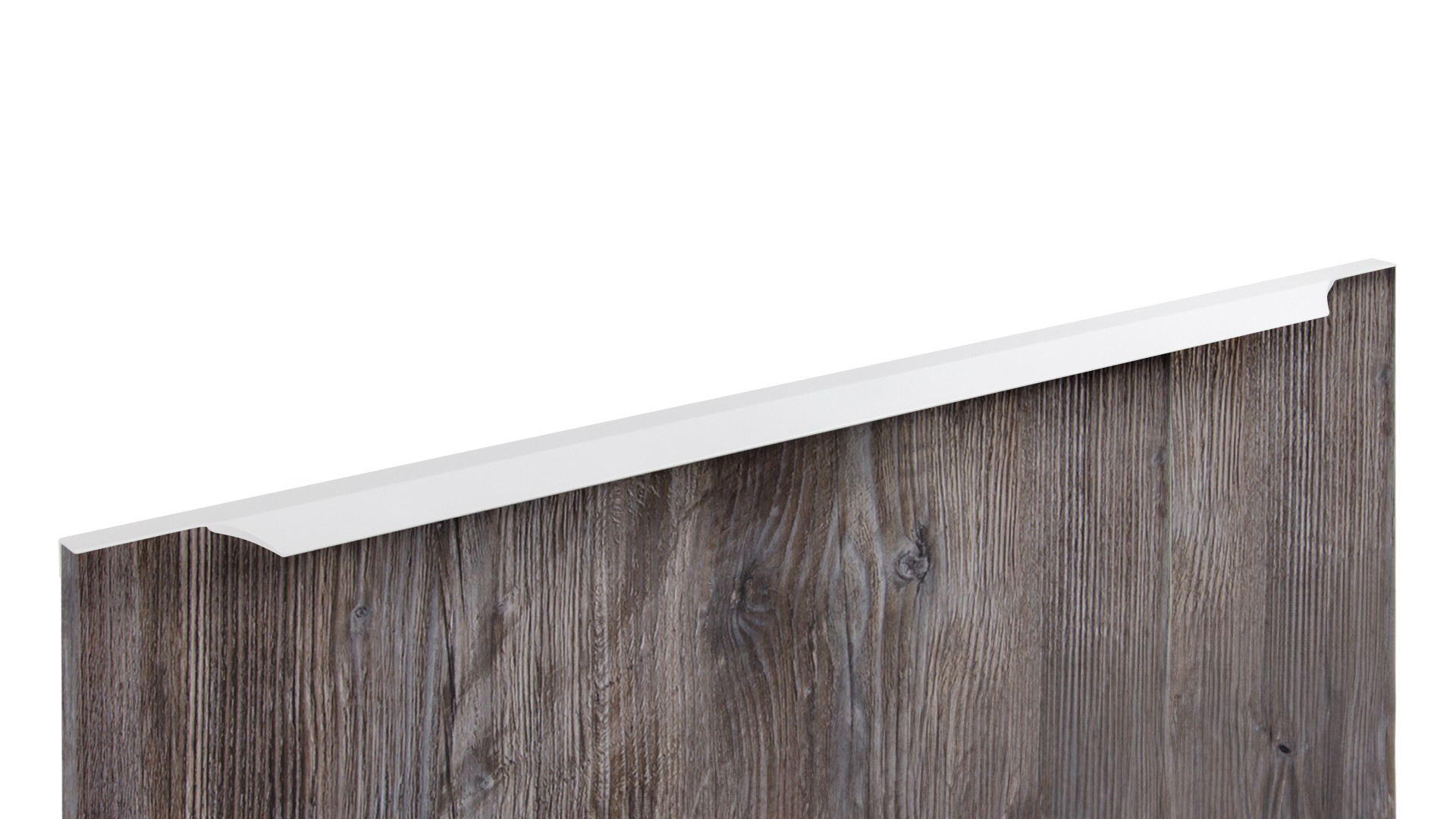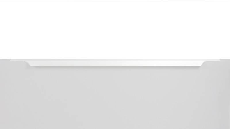 WING RT114 — торцевая ручка с изгибом из алюминия, устанавливается наложением на фасады толщиной 18,8 мм (в цветах BL,GR,SC,SG) и 18,5 мм (в цвете W).