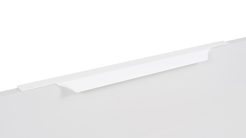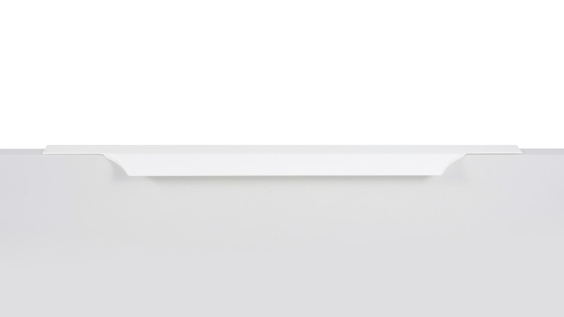 WING RT114 — торцевая ручка с изгибом из алюминия, устанавливается наложением на фасады толщиной 18,8 мм (в цветах BL,GR,SC,SG) и 18,5 мм (в цвете W).