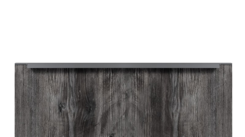 Модель закрепляется на верхний торец фасада, саморезы (приобретаются отдельно) вкручиваются в отверстия с фаской с задней стороны фасада.