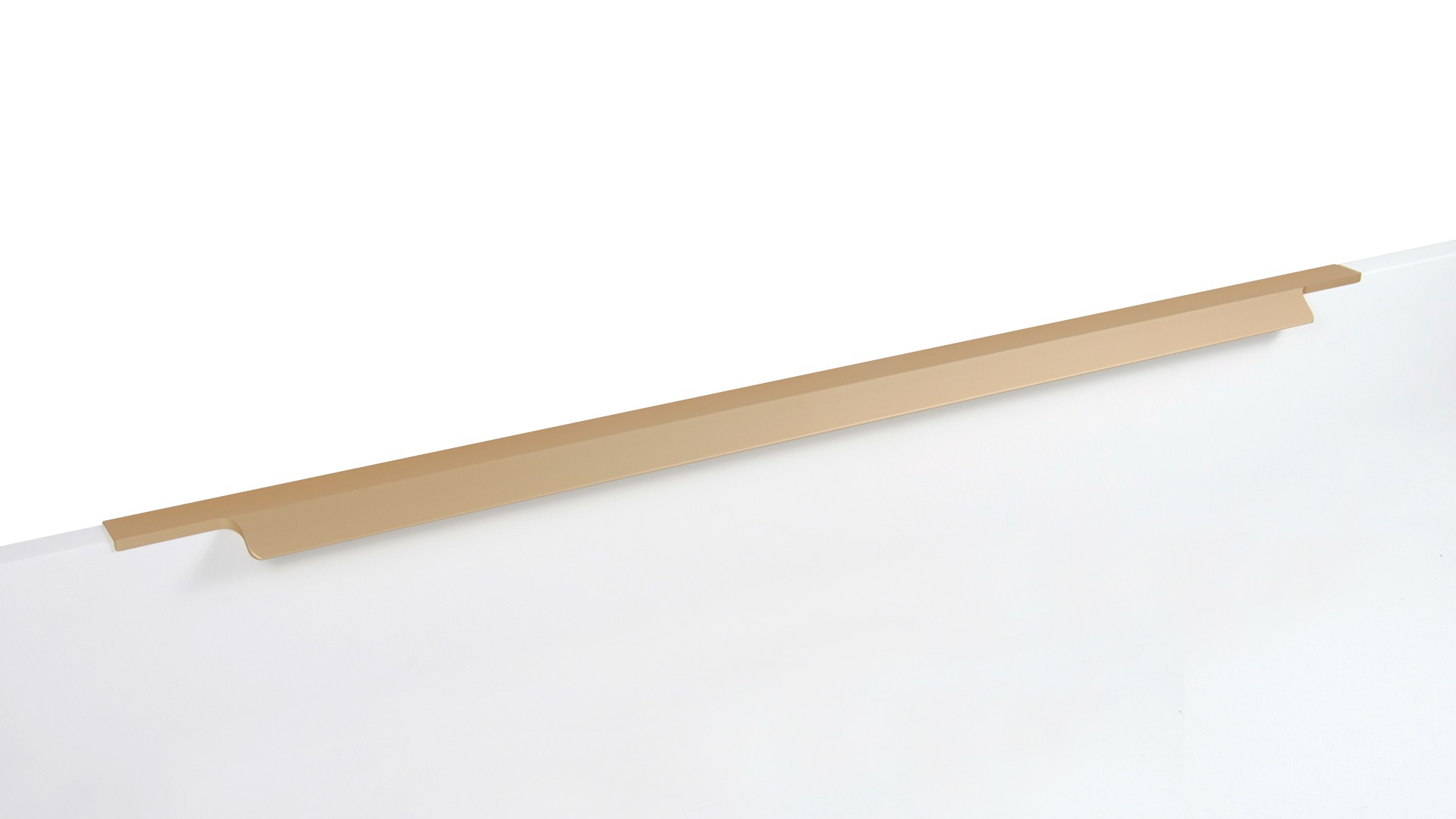 Конструкция ручки имеет детально проработанный выступ по всей длине, что создаёт эффект погружения фасада, аккуратно закрывая его края. Рифлёное покрытие в зоне захвата обеспечит эргономичное использование ручки без соскальзывания.