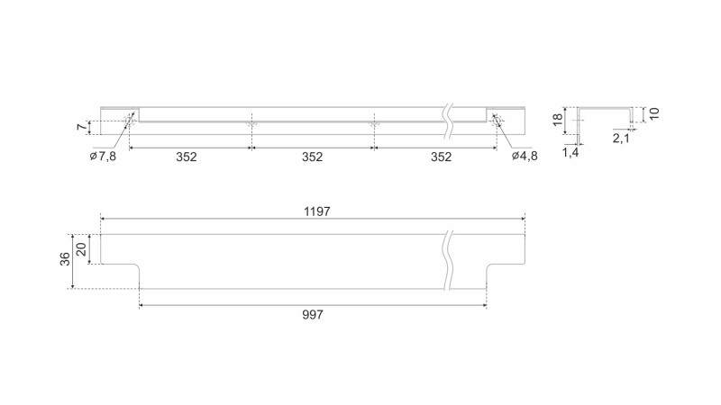 Ручка имеет богатое разнообразие длин. В зависимости от длины модель можно разместить двумя способами — «в размер» фасада и по центру широких фасадов (как большой «язычок»).