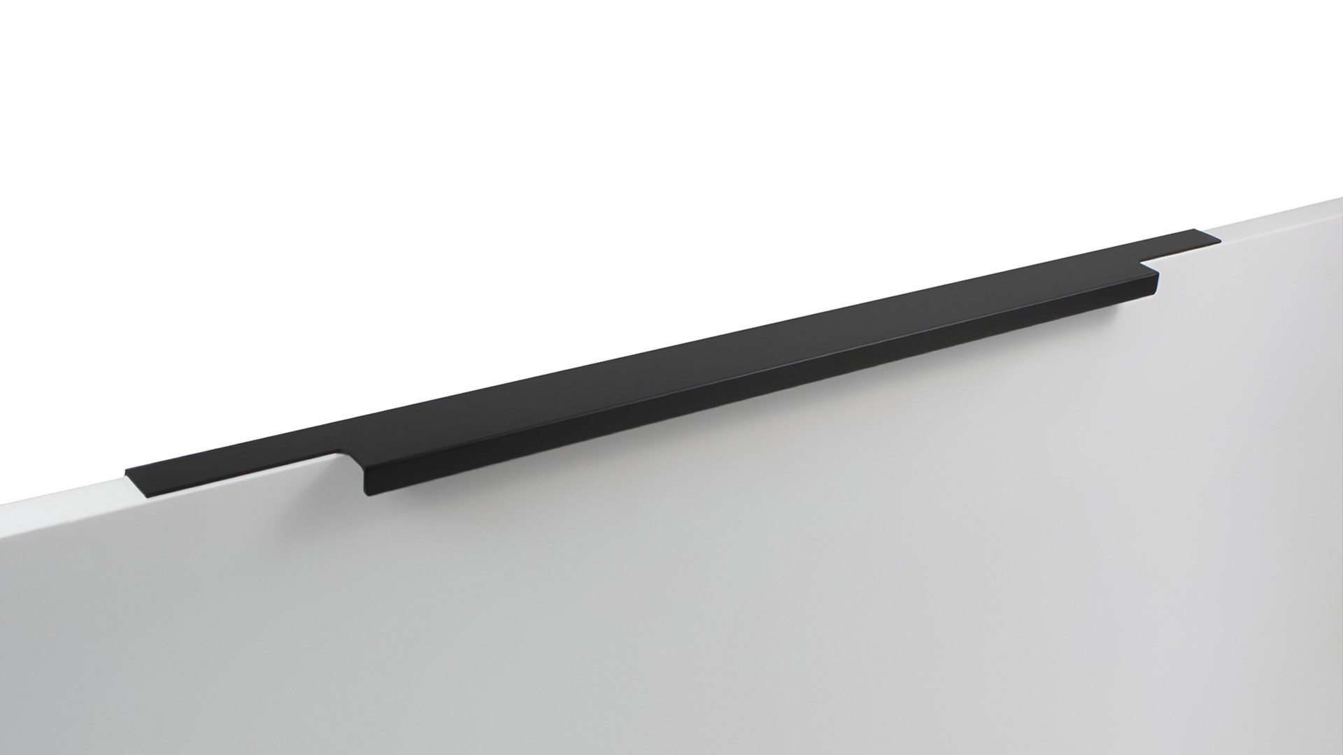 Ручка имеет богатое разнообразие длин. В зависимости от длины модель можно разместить двумя способами — «в размер» фасада и по центру широких фасадов (как большой «язычок»).