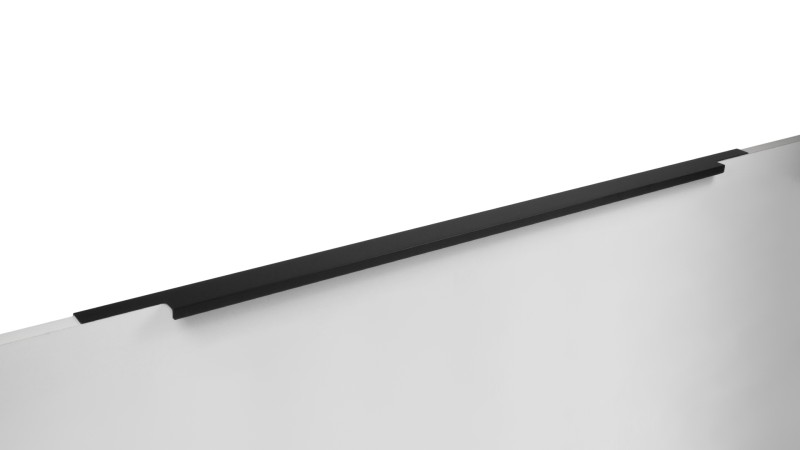 Ручка имеет богатое разнообразие длин. В зависимости от длины модель можно разместить двумя способами — «в размер» фасада и по центру широких фасадов (как большой «язычок»).