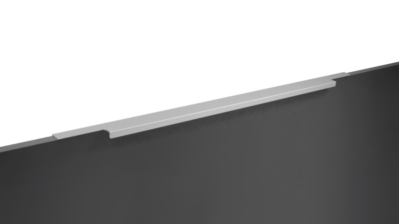 Ручка имеет богатое разнообразие длин. В зависимости от длины модель можно разместить двумя способами — «в размер» фасада и по центру широких фасадов (как большой «язычок»).