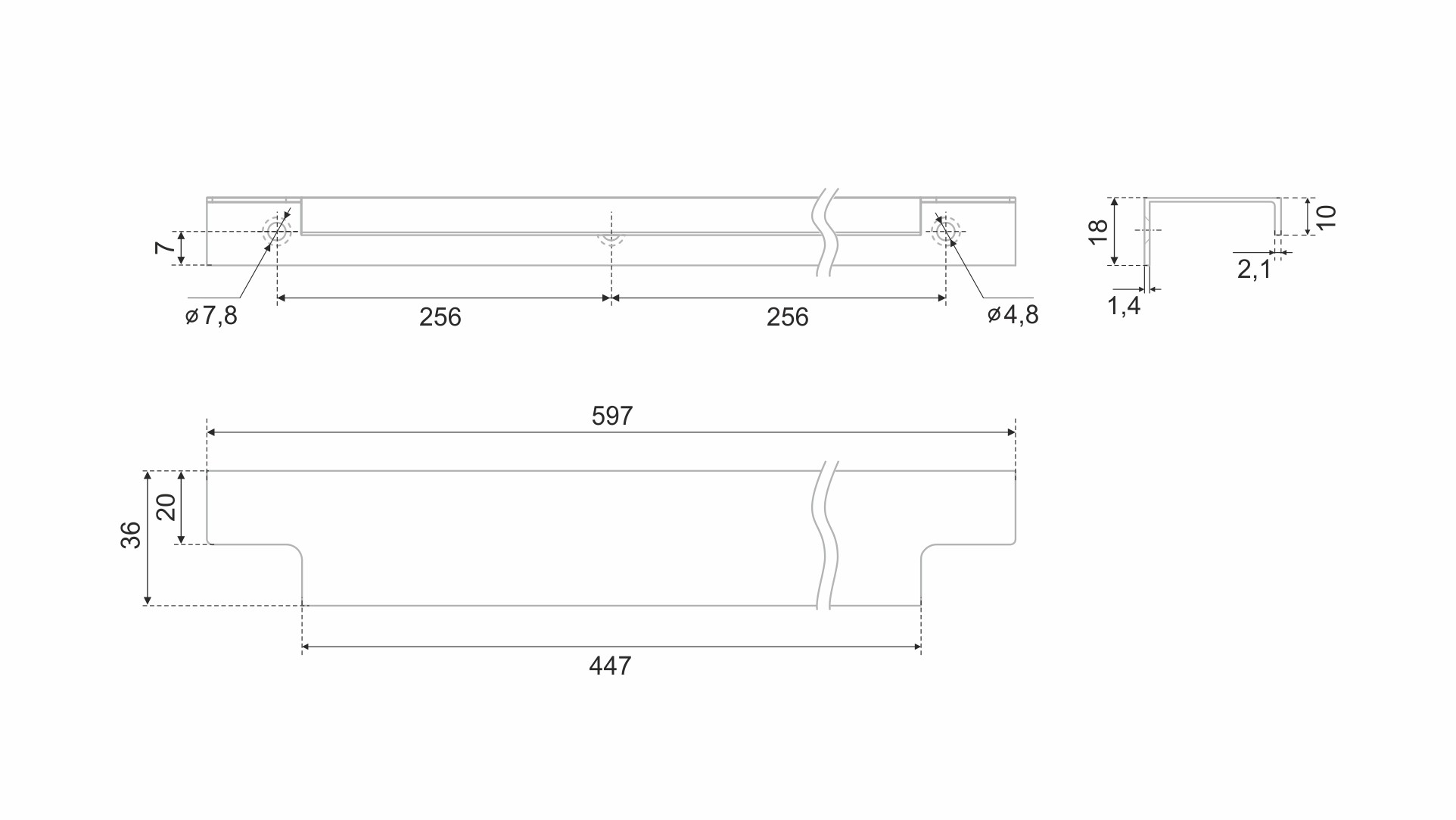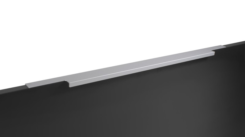 Ручка имеет богатое разнообразие длин. В зависимости от длины модель можно разместить двумя способами — «в размер» фасада и по центру широких фасадов (как большой «язычок»).