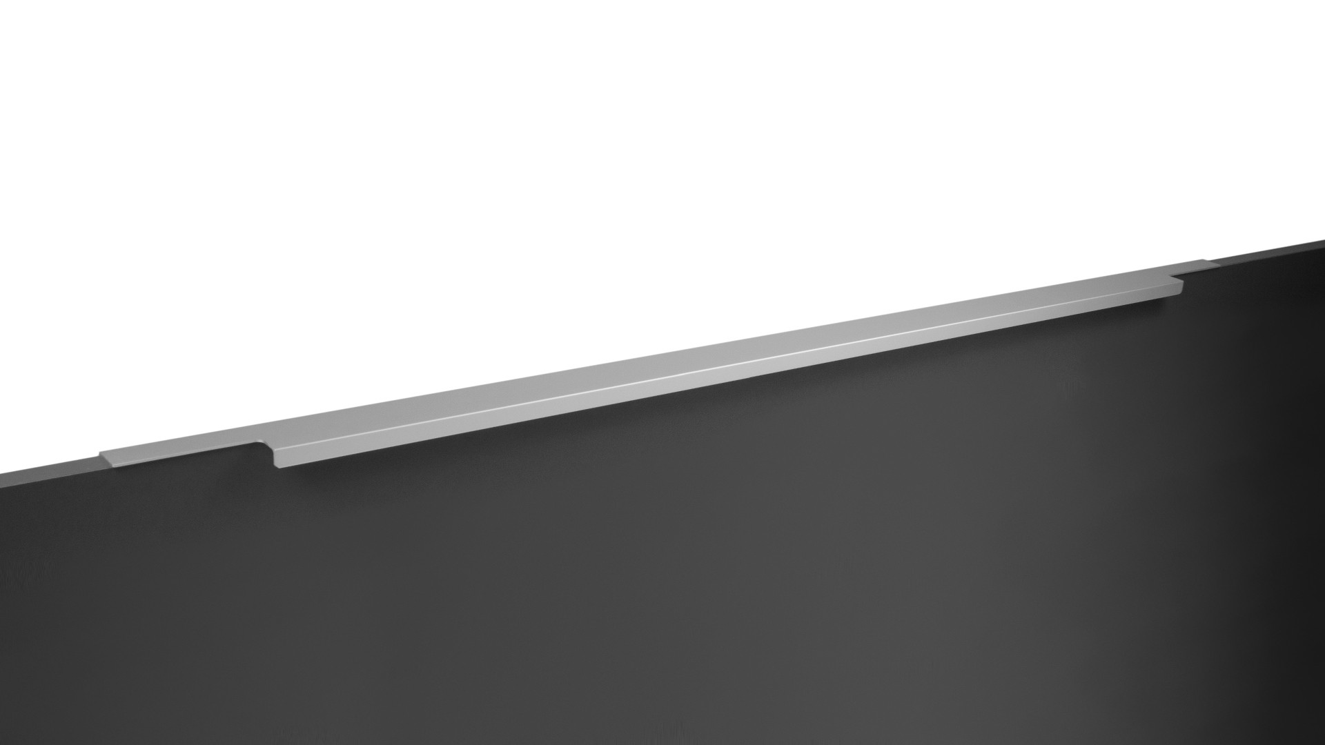 Ручка имеет богатое разнообразие длин. В зависимости от длины модель можно разместить двумя способами — «в размер» фасада и по центру широких фасадов (как большой «язычок»).