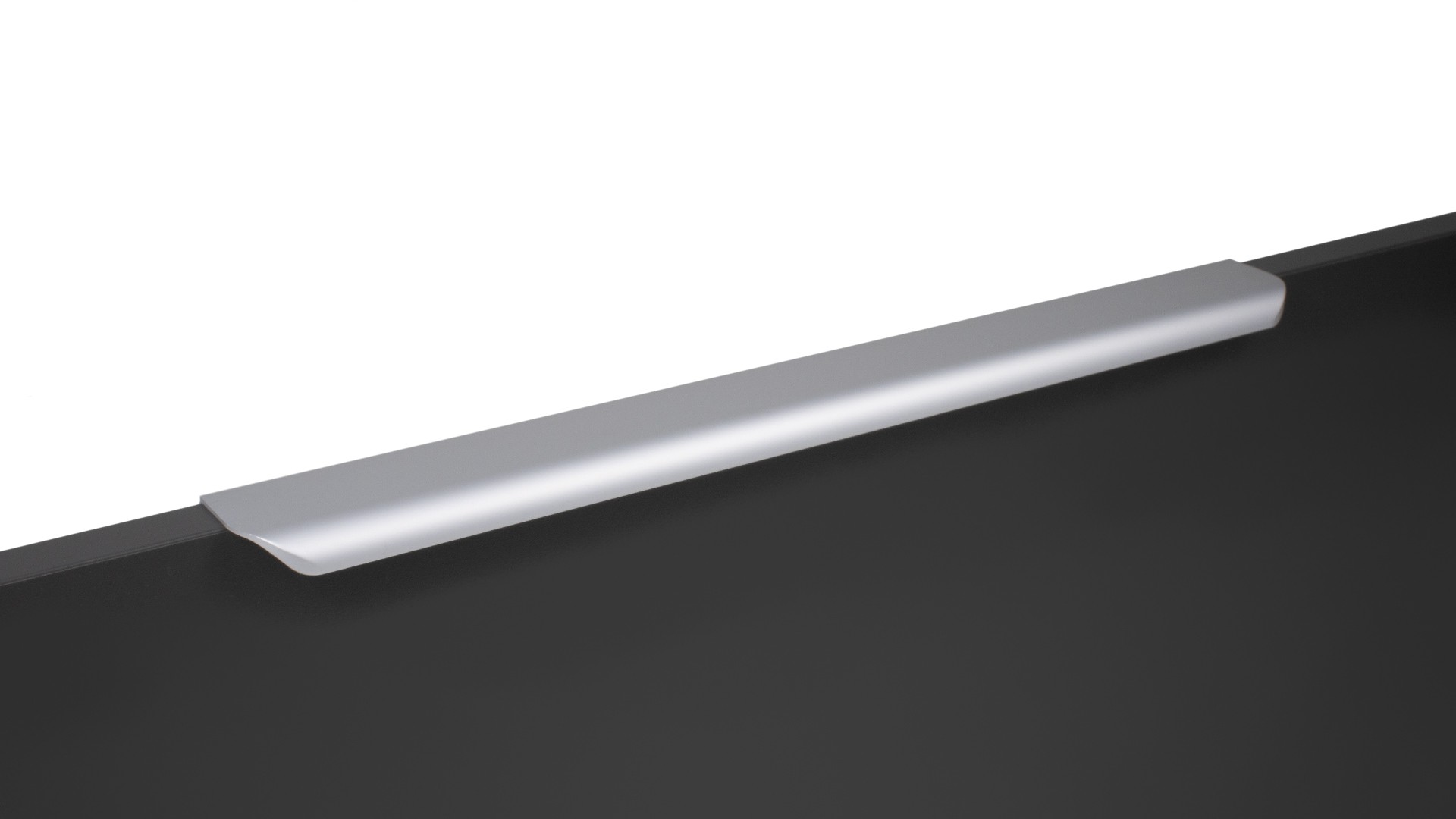 Ручка имеет богатое разнообразие длин. В зависимости от длины модель можно разместить двумя способами — «в размер» фасада и по центру широких фасадов (как большой «язычок»).