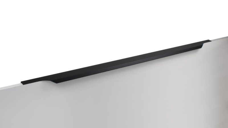 TERA 2.0 подойдёт как для узких бутылочниц и корзин-карго, так и выдвижных ящиков формата макси и высоких распашных фасадов. Торцевую ручку, независимо от размера, можно устанавливать не только чётко в размер фасада, но и как широкий язычок. Ручки в виде язычков прекрасно выполняют свою функциональную и эстетическую роль на более широких фасадах.