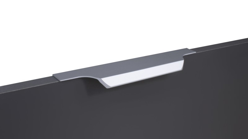 TERA 2.0 подойдёт как для узких бутылочниц и корзин-карго, так и выдвижных ящиков формата макси и высоких распашных фасадов. Торцевую ручку, независимо от размера, можно устанавливать не только чётко в размер фасада, но и как широкий язычок. Ручки в виде язычков прекрасно выполняют свою функциональную и эстетическую роль на более широких фасадах.
