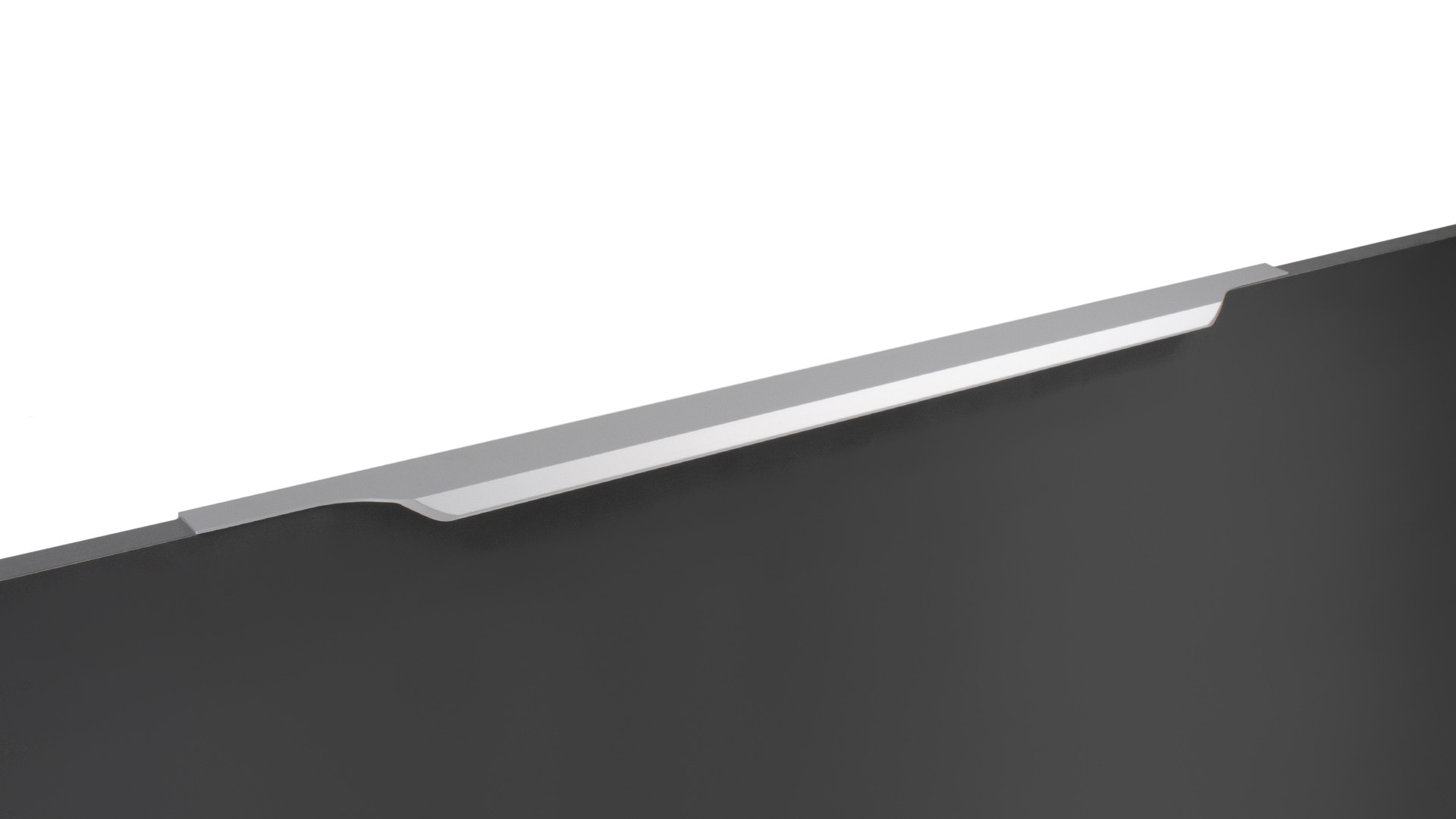 TERA 2.0 подойдёт как для узких бутылочниц и корзин-карго, так и выдвижных ящиков формата макси и высоких распашных фасадов. Торцевую ручку, независимо от размера, можно устанавливать не только чётко в размер фасада, но и как широкий язычок. Ручки в виде язычков прекрасно выполняют свою функциональную и эстетическую роль на более широких фасадах.