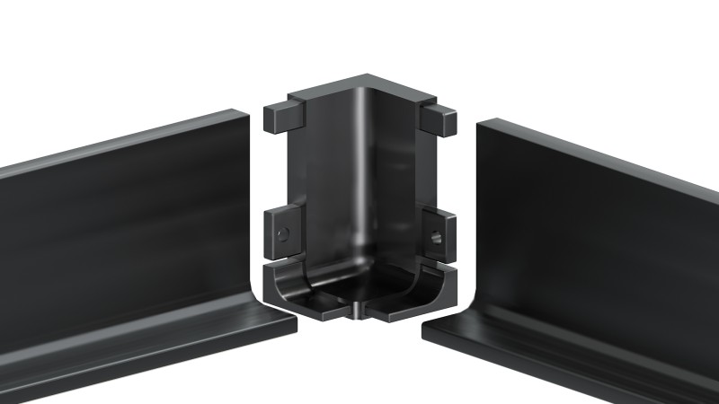 Внутренний уголок-держатель RZ051.03 поможет состыковать угловые переходы L-образного профиля RP051 GOLA BALANCE, размещаемого под столешницей мебельного гарнитура. Уголки выполнены из прочного цинк-алюминиевого сплава. Их цветовая палитра идентична оттенкам профилей.