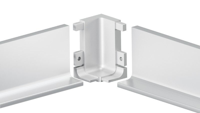 Внутренний уголок-держатель RZ051.03 поможет состыковать угловые переходы L-образного профиля RP051 GOLA BALANCE, размещаемого под столешницей мебельного гарнитура. Уголки выполнены из прочного цинк-алюминиевого сплава. Их цветовая палитра идентична оттенкам профилей.