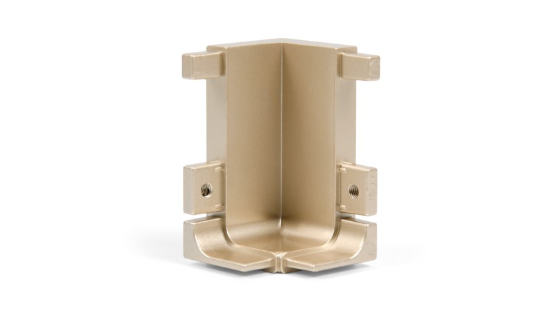 Внутренний уголок-держатель RZ051.03 поможет состыковать угловые переходы L-образного профиля RP051 GOLA BALANCE, размещаемого под столешницей мебельного гарнитура. Уголки выполнены из прочного цинк-алюминиевого сплава. Их цветовая палитра идентична оттенкам профилей.
