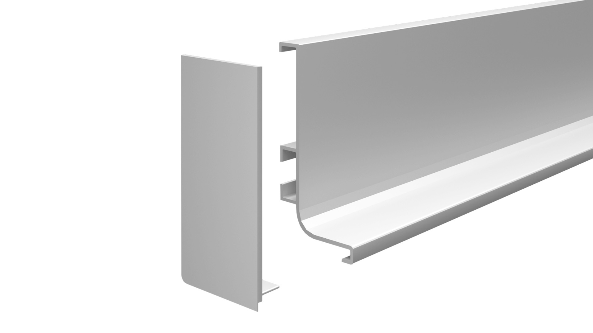 RZ051.04 - закрытые заглушки из цинк-алюминия для стильного и эстетичного оформления среза горизонтального профиля GOLA BALANCE по краям гарнитура, на стыке с посудомоечной машиной, духовым шкафом или мебельным модулем.