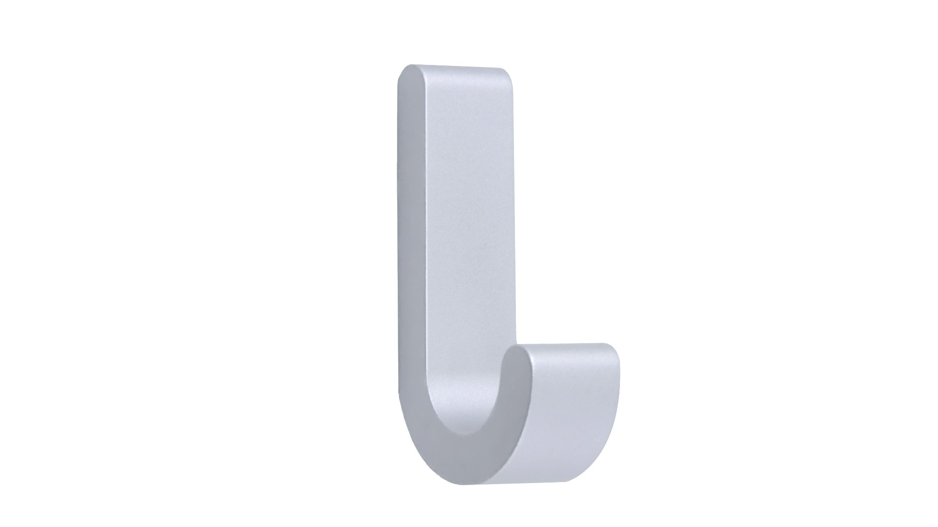 УНО K108 — однорожковый крючок скрытого монтажа из алюминия универсального минималистичного дизайна с мягким изгибом для удобного навешивания и хранения элементов гардероба и бытовых предметов.