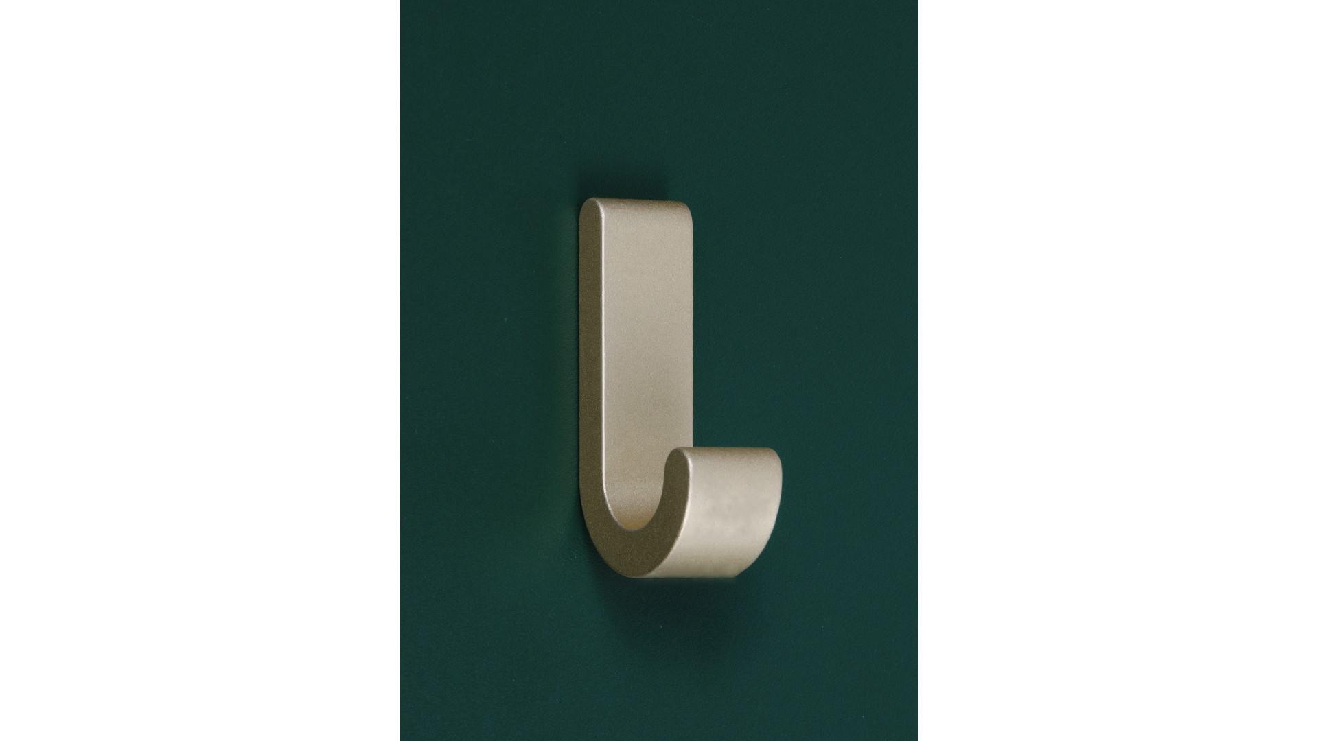 УНО K108 — однорожковый крючок скрытого монтажа из алюминия универсального минималистичного дизайна с мягким изгибом для удобного навешивания и хранения элементов гардероба и бытовых предметов.