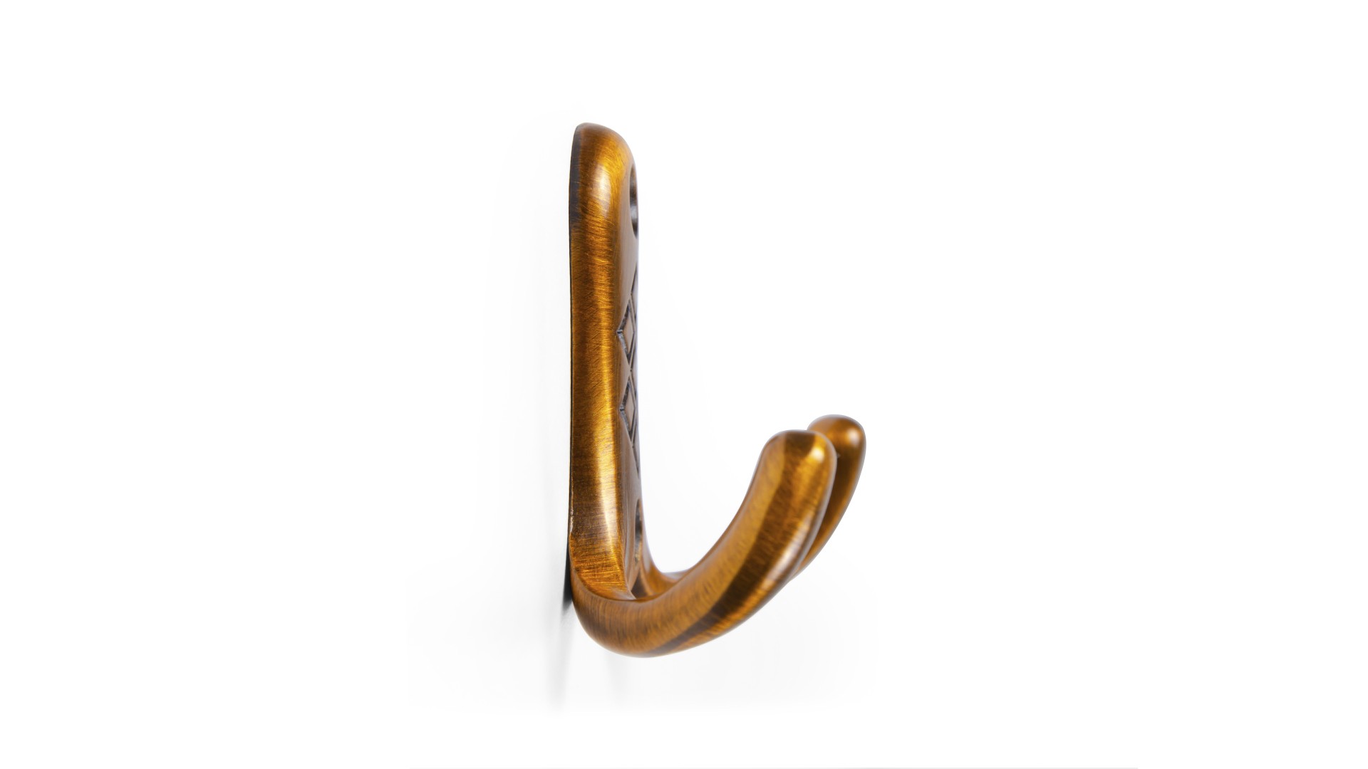 Покрытие крючка устойчиво к истиранию, что обеспечит продолжительный срок эксплуатации. За счёт монолитной конструкции, обтекаемым краям, аккуратному декору модель станет отличным дополнением для классических интерьеров.
