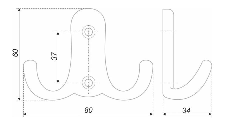 K204.01 — двухрожковый крючок из цинк-алюминия с надёжным креплением.