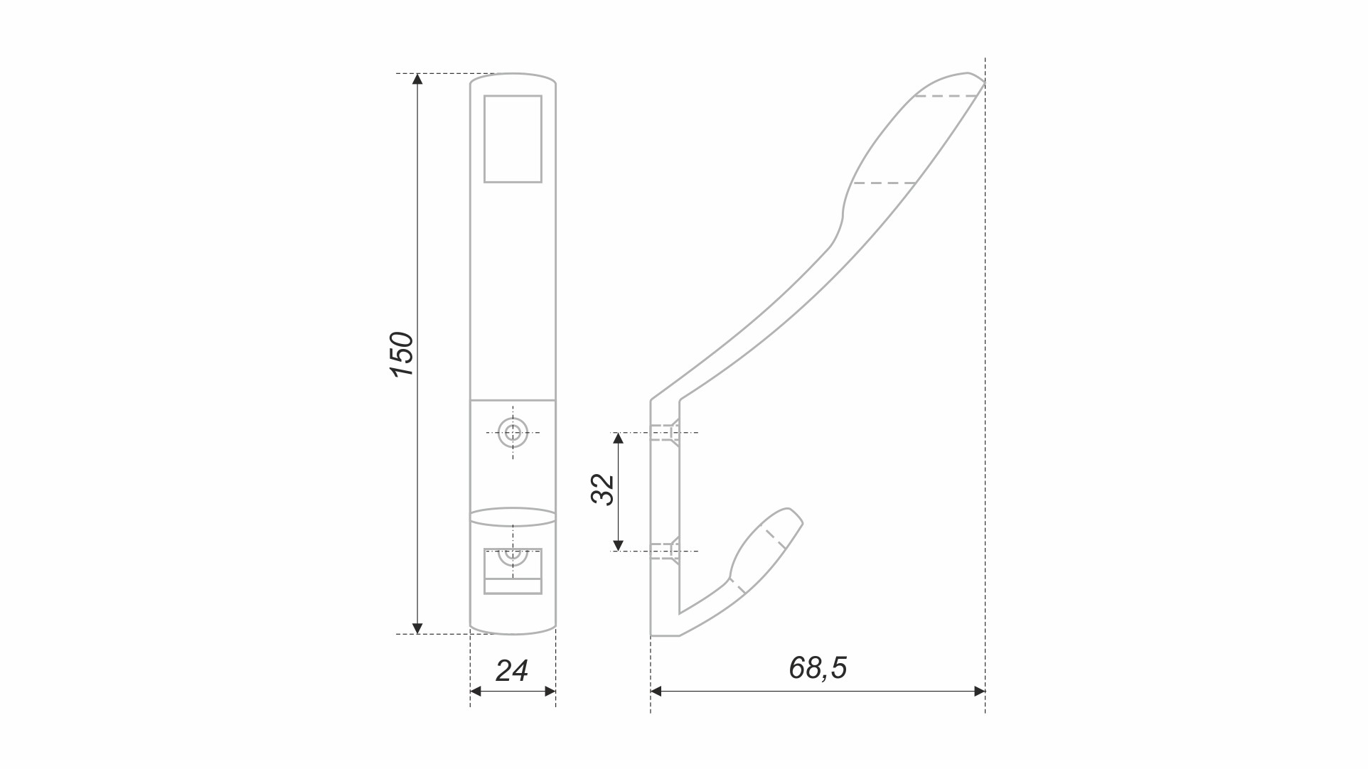 Крючок плотно закрепляется при помощи саморезов (идут в комплекте) в аккуратных фасках. Саморезы встают вровень с крючком и практически не заметны для глаза.