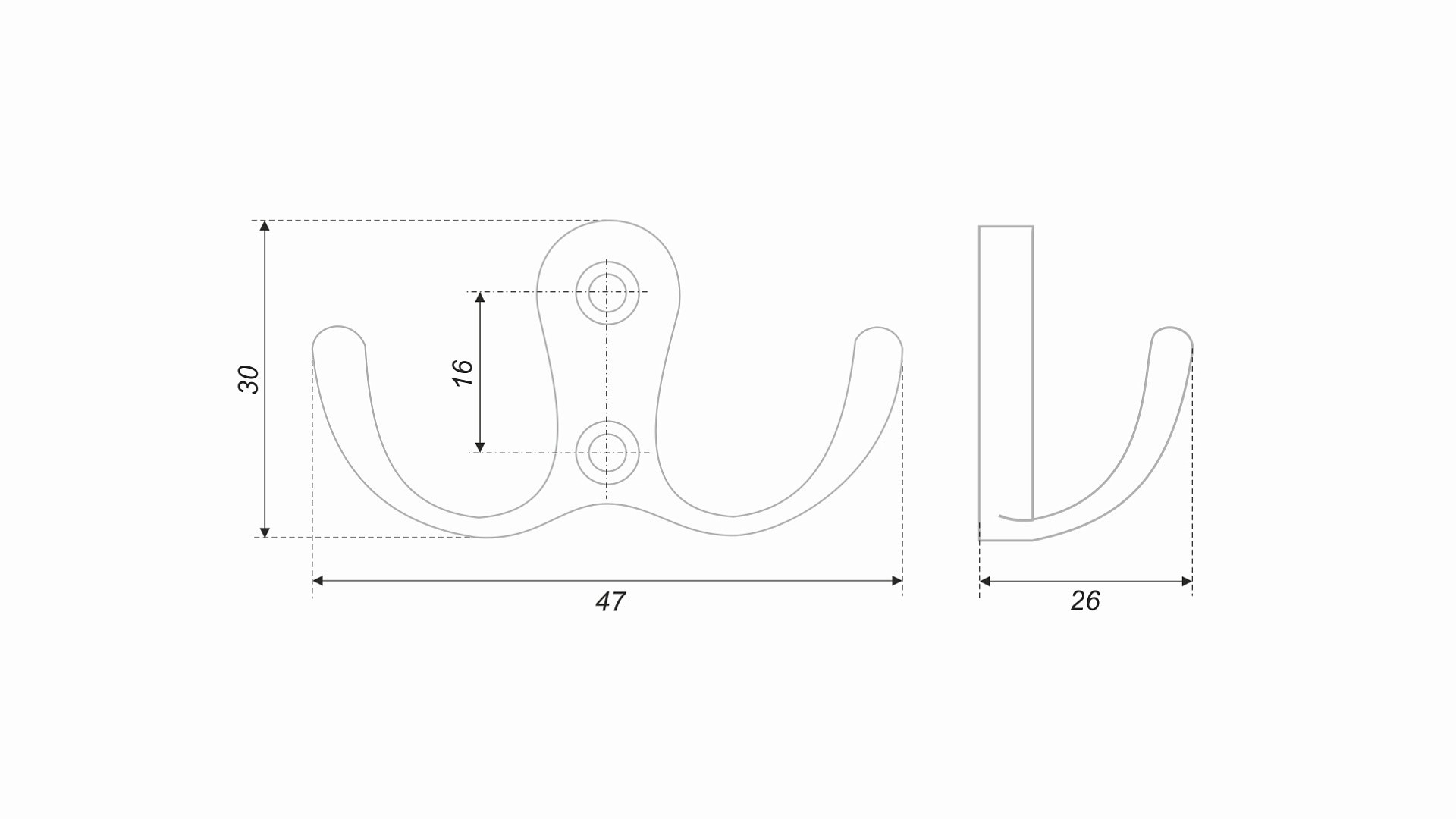 Крючок двухрожковый / CP - Хром полированный / до 9 кг