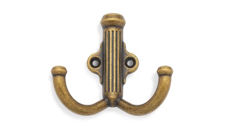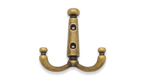Крючок двухрожковый / AB - Старинная латунь / до 15 кг / Неоклассика, Высокая классика