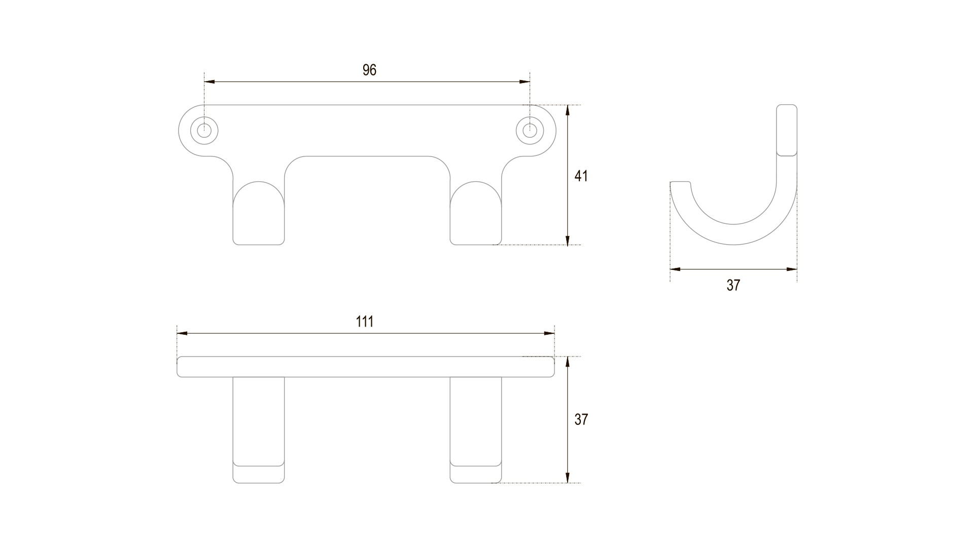 Покрытие крючка устойчиво к истиранию, что обеспечит продолжительный срок эксплуатации. За счёт монолитной конструкции и обтекаемым краям, модель станет отличным дополнением как для дизайнерских проектов, так и для серийной мебели.