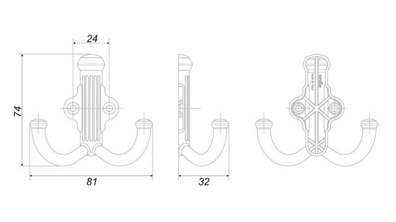 Двухрожковый крючок RIGATA К251 — эргономичная модель с декорированным основанием, напоминающим рельеф античных колонн. Модель является миниатюрным вариантом трёхрожкового К351 и фурнитурной парой к ручкам RIGATA RS531 и RC531.