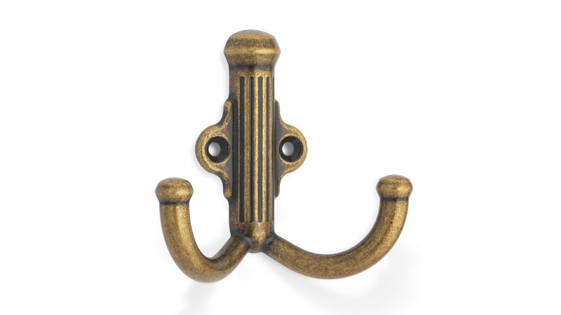 Крючок двухрожковый / AB - Старинная латунь / до 15 кг / Неоклассика, Высокая классика