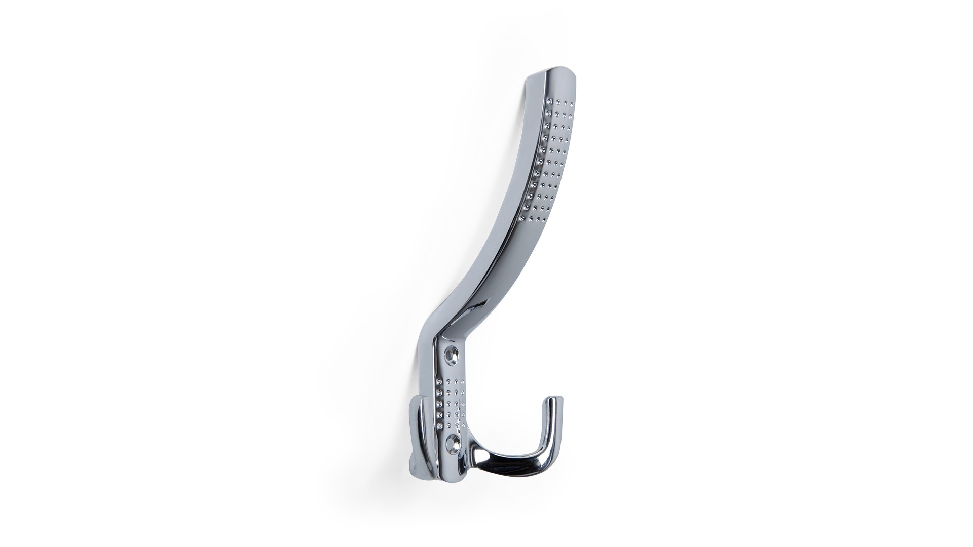 Крючок плотно закрепляется при помощи саморезов (идут в комплекте) в аккуратных фасках. Саморезы встают вровень с крючком и практически не заметны для глаза.