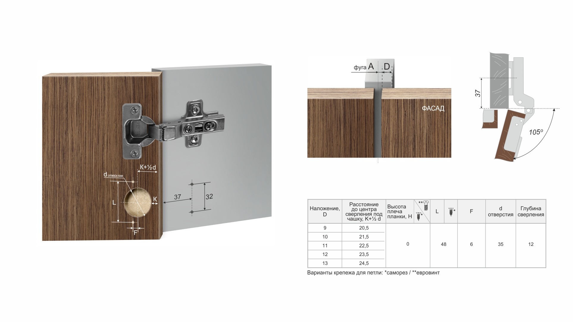 Под евровинт и саморез, с d отверстий 5,5 мм