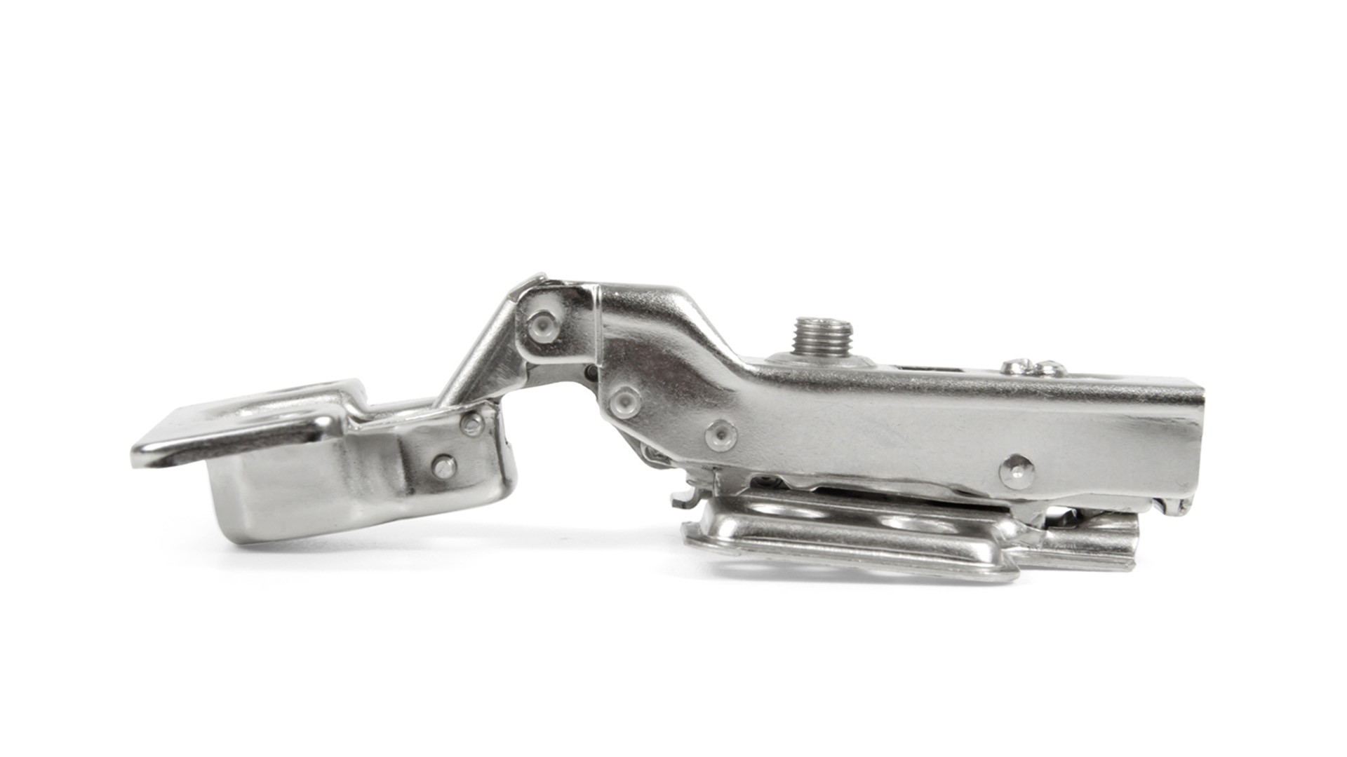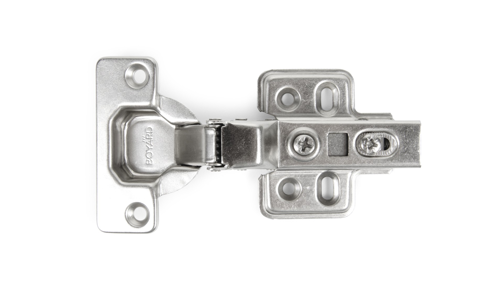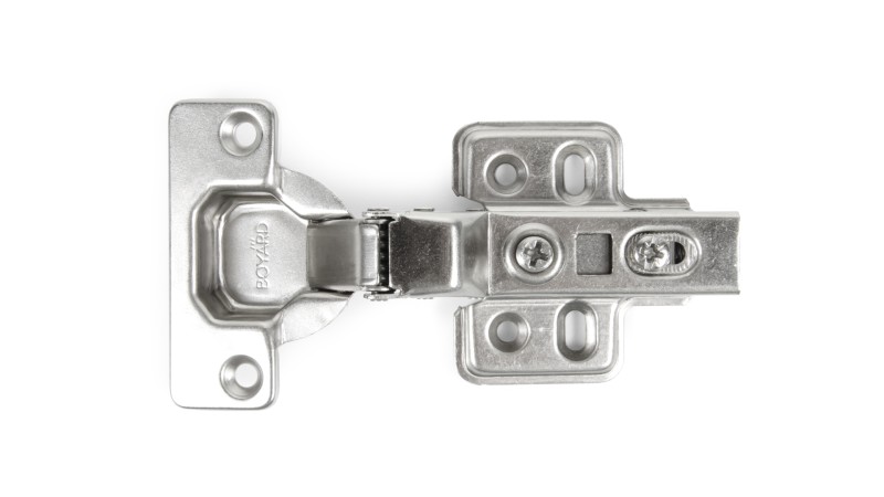 H302 – это четырехшарнирная цельнометаллическая вкладная петля системы Clip-on с амортизатором и уголом открывания 110°.