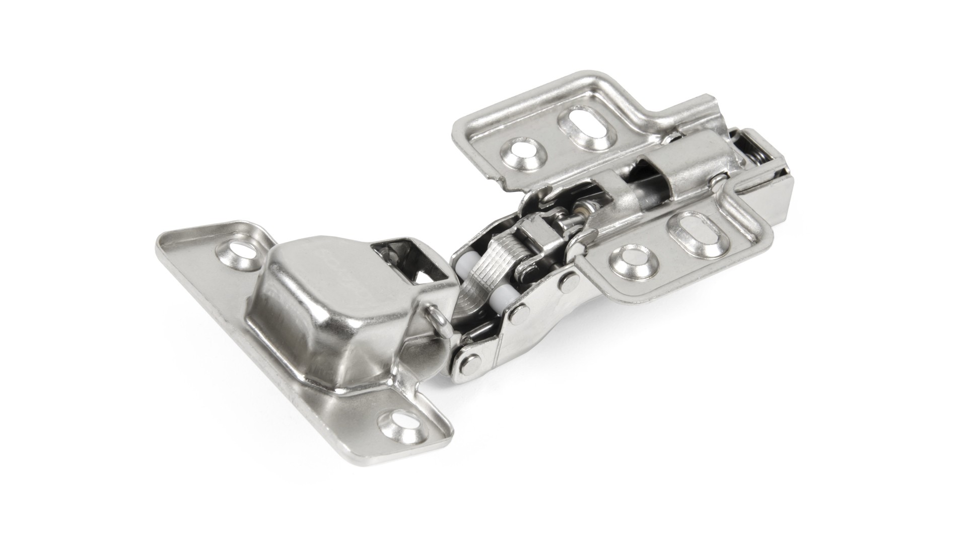 Ведущее достоинство петли H302 – наличие гидравлического амортизатора, который обеспечивает мягкое, плавное и бесшумное закрывание фасада, а также возможность самозакрывания фасада с оптимального угла 20°. Амортизатор встроен в корпус петли, что делает его минималистичным и компактным.