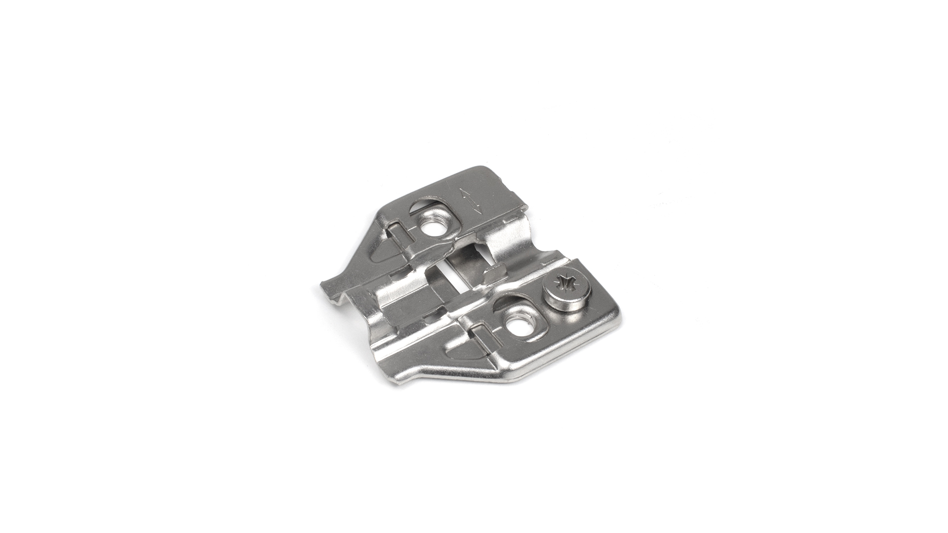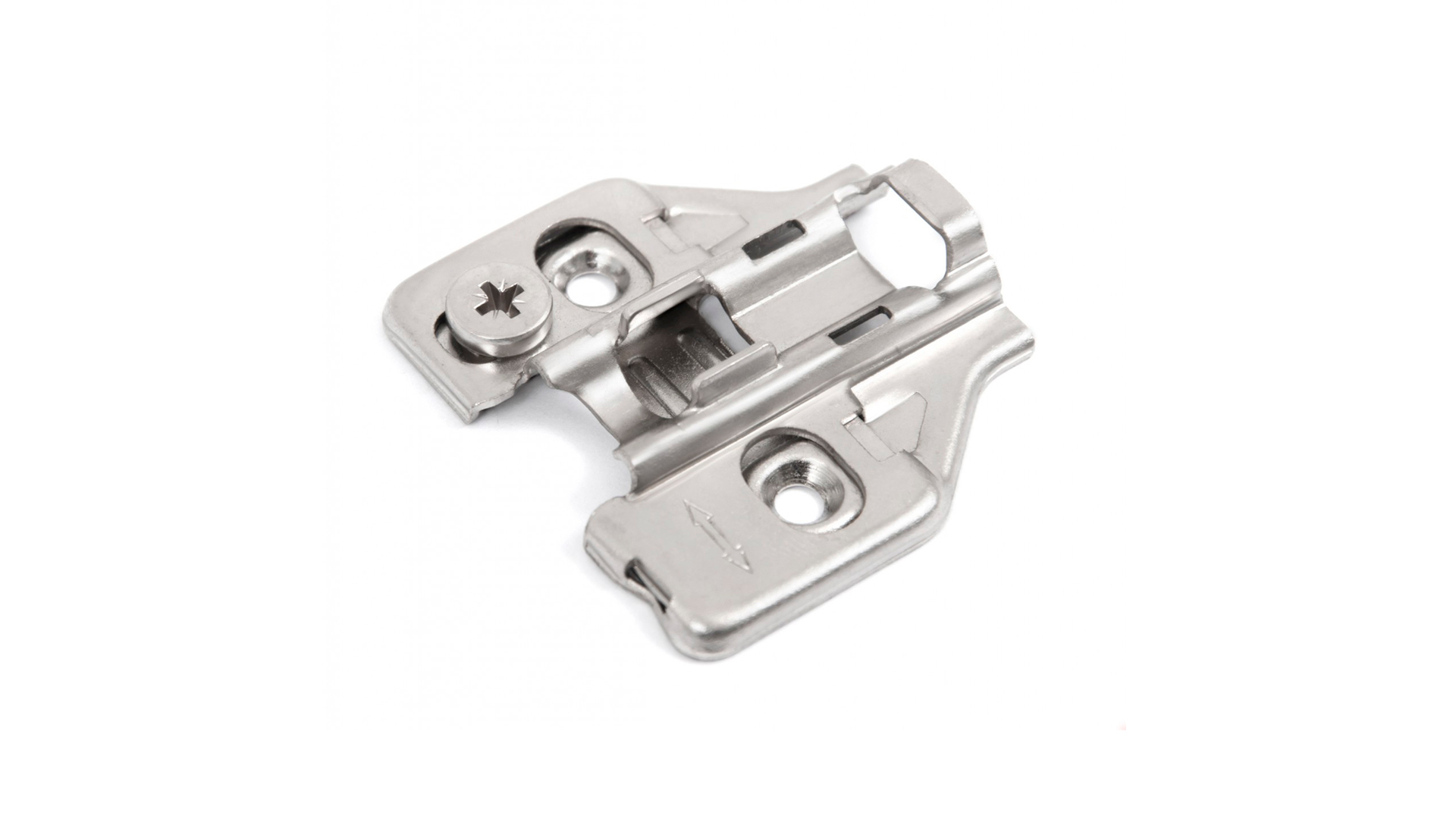 Модель можно укомплектовать разными видами эксцентриковых планок трапециевидной формы: с высотой 0 или 2 мм, с вкрученными евровинтами или с креплением на саморезы, а также декоративными заглушками на чашку и на тело петли и ограничителем угла открывания ЛИМИТ H87. Планки и аксессуары приобретаются отдельно.