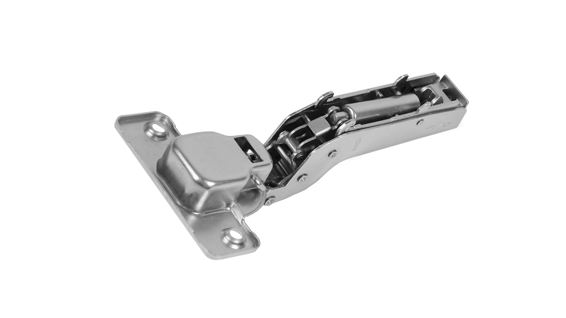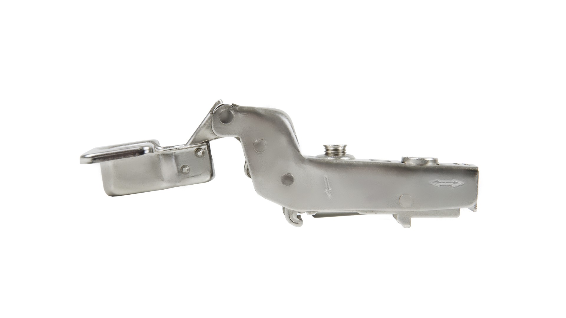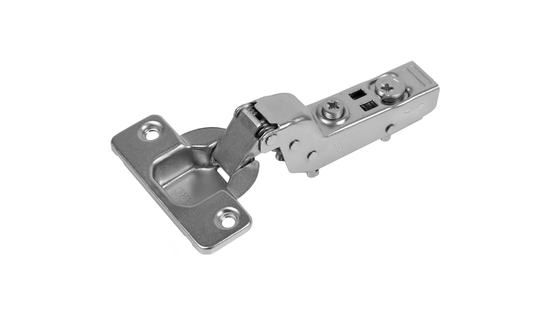 Суммарная 3D-регулировка, стрелки на теле петли и регулировочный винт с ограничителем обеспечат оперативный и корректный монтаж без рисков поломки амортизатора. Регулировка по вертикали осуществляется при помощи эксцентрикового винта в корпусе ответных планок.