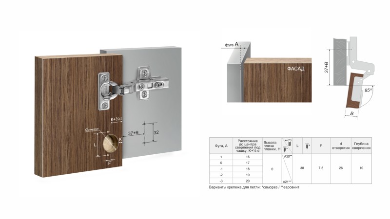 Модель входит в линейку современных петель NEO, которая создана в соответствии с международными стандартами для производителей качественной мебели сегментов «средний» и «средний+».