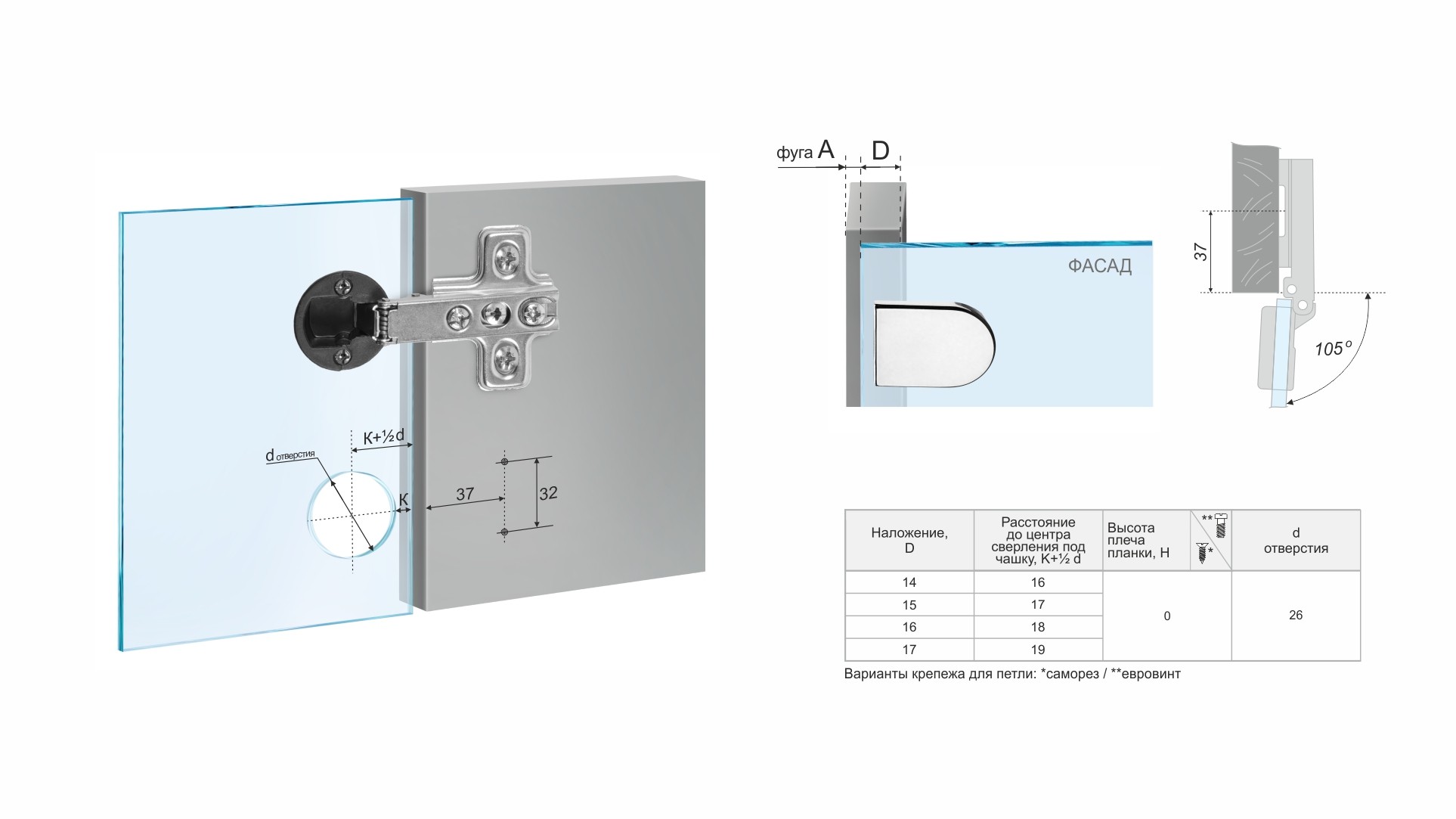 - Эксцентриковый винт в корпусе петли