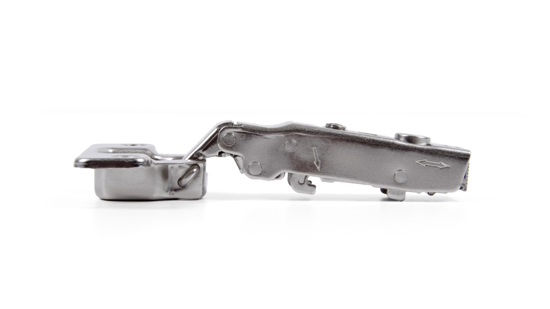 Модель имеет регулировку фасада в трёх плоскостях (по глубине, горизонтали и вертикали). Удобная регулировка по высоте и глубине в одно действие осуществляется при помощи эксцентрикового винта, встроенного в корпус петли. Регулировка фасада по горизонтали доступна при помощи винтов на планке.