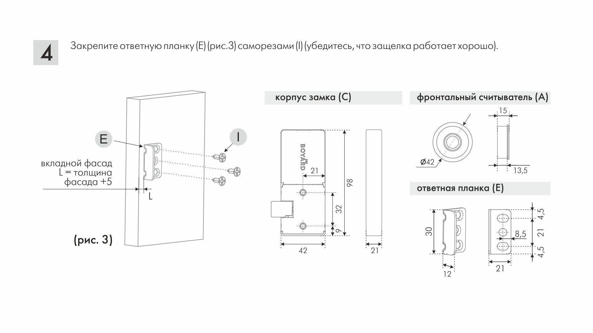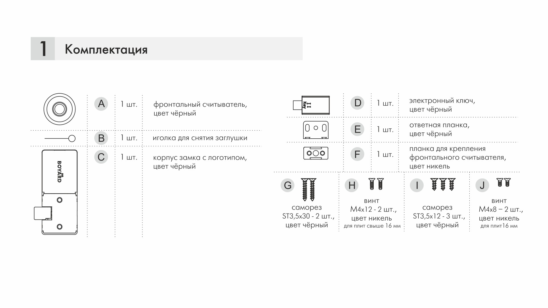 - планка для крепления фронтального считывателя (1 шт.),